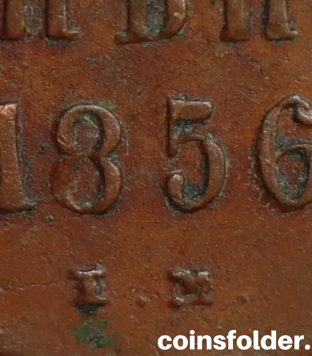 1856 Russian 1 Kopeck Error IM Mint Mark – Alexander II Coin, VF