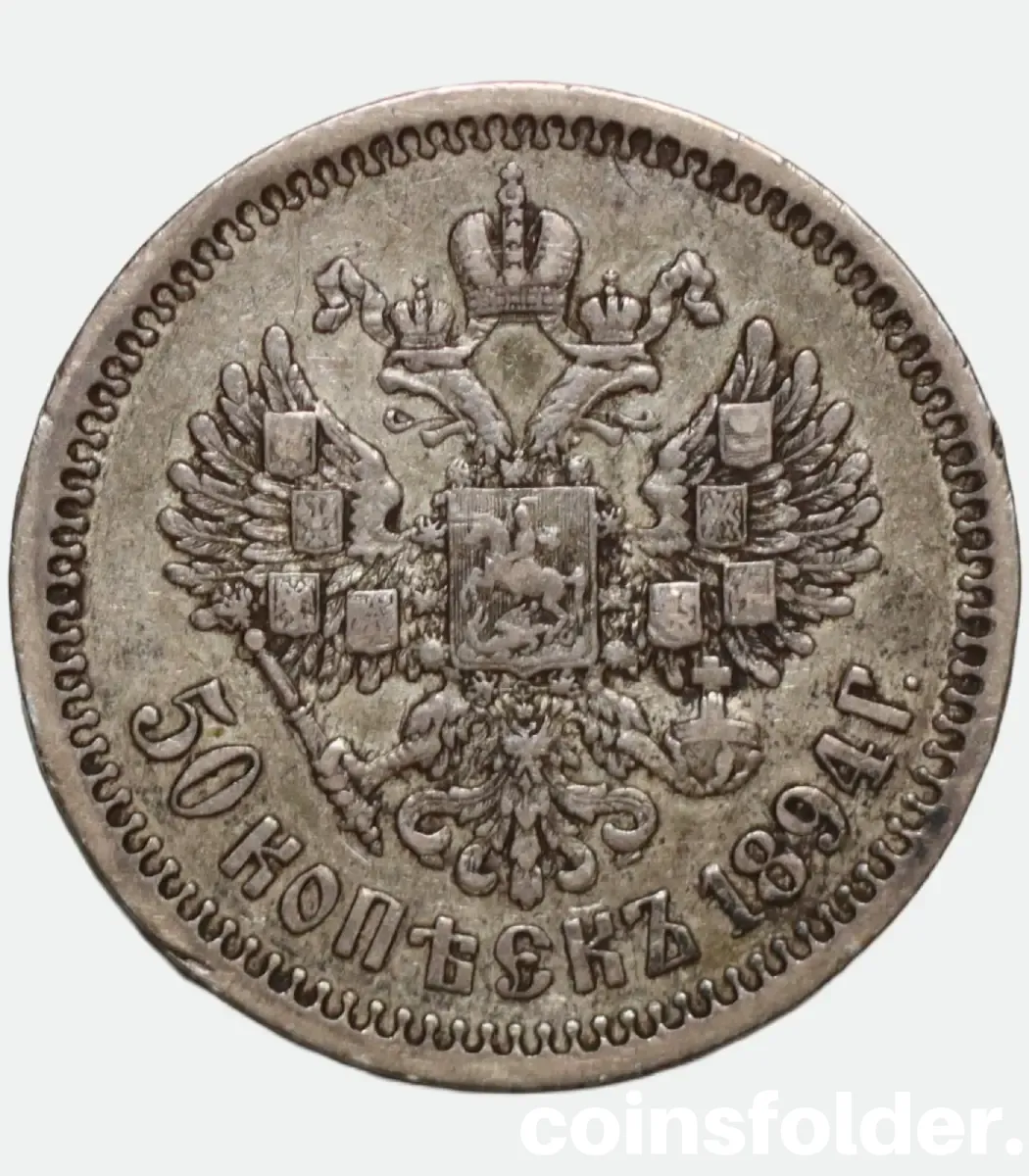 The 1894 Russian 50 Kopecks coin from the reign of Emperor Alexander III is a remarkable piece of late-Imperial Russian numismatics. Struck in .900 fine silver at the St. Petersburg Mint, it reflects the strength, conservatism, and artistic precision of Russia’s final 19th-century coinage.