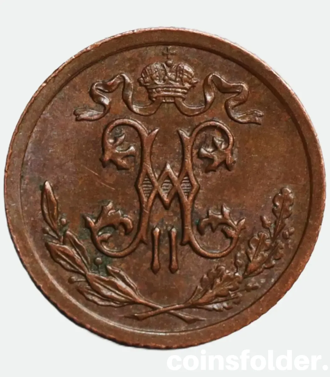 This example is preserved in UNC (Uncirculated) condition, showcasing brilliant luster and fully defined details with no signs of wear. Its rich copper tone and sharp strike highlight the intricate craftsmanship of the St. Petersburg Mint. Coins of this grade and period are increasingly scarce, making this piece a standout addition for collectors of Imperial Russian coins, Nicholas II issues, or early 20th-century copper coinage.