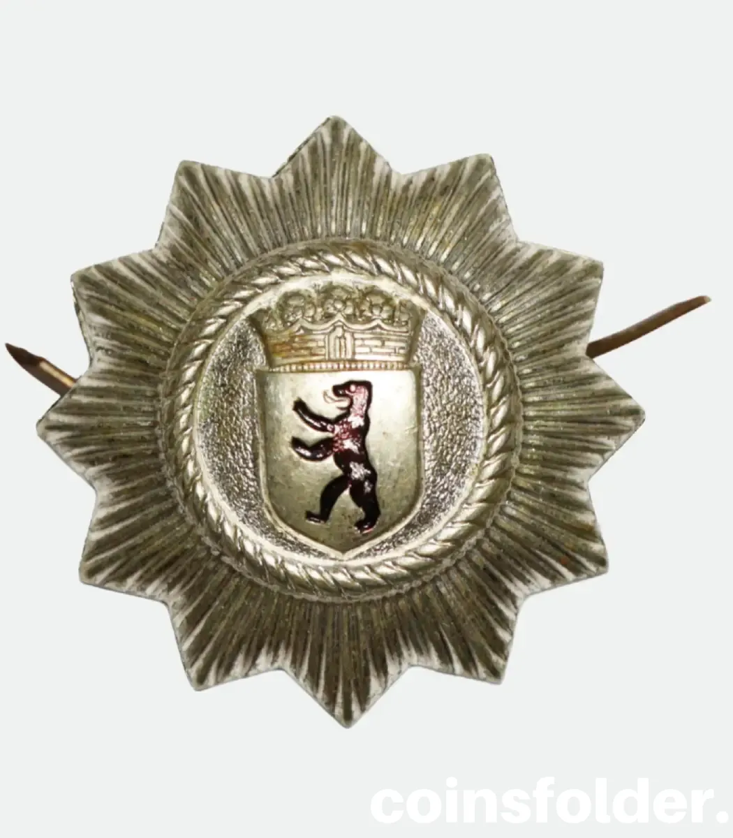 This example remains in good condition, with clear detail in the Berlin Bear and surrounding starburst. It is an excellent collectible for those interested in Berlin history, police insignia, or German militaria.